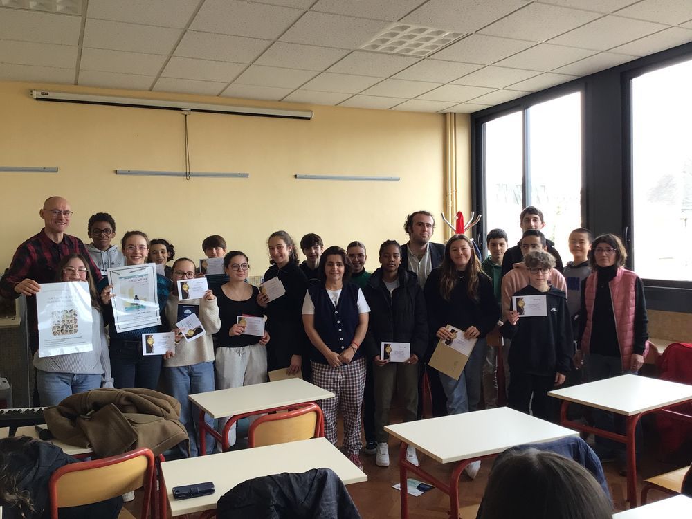 Ce lundi 4 mars, le comité de lecture et nos jeunes auteurs de 5eR et 4eL se sont réunis pour la remise des prix, tant attendue ! L’heure précédente, les 5eR ont échangé avec William Théviot, (célèbre pianiste contemporain, autiste d’Asperger) sur les thèmes de la création artistique, de la rumeur, du harcèlement et du handicap.