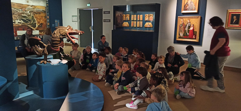 Vendredi 11 avril 2025, la classe de PS-MS est allée à pied au Musée Sainte Croix pour découvrir des oeuvres d'Art (sculptures, tableaux) et écouter les histoires/légendes sur la déesse Athéna, la Reine Ste Radegonde et la Grand'Goule. Ce fut une très belle sortie culturelle.