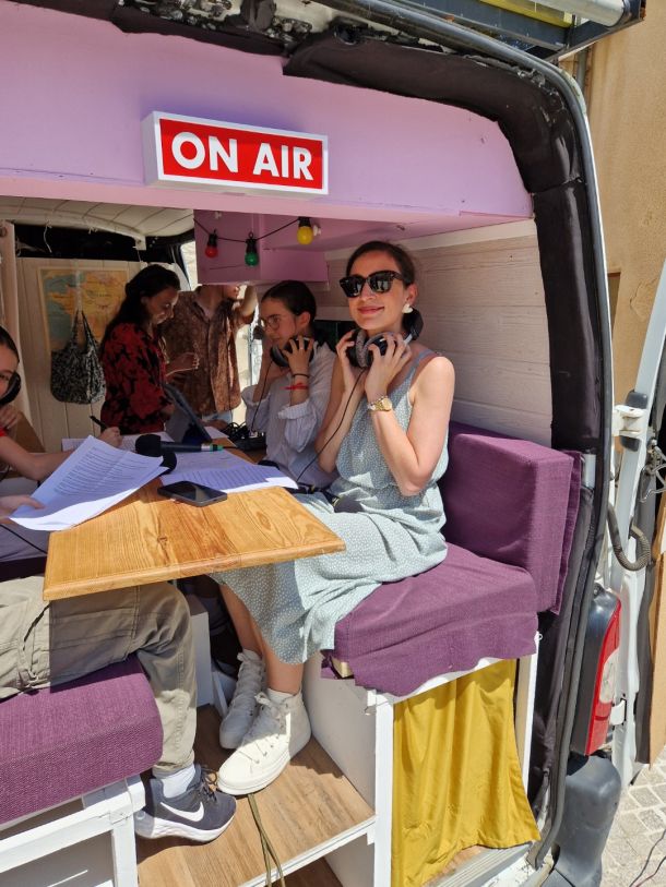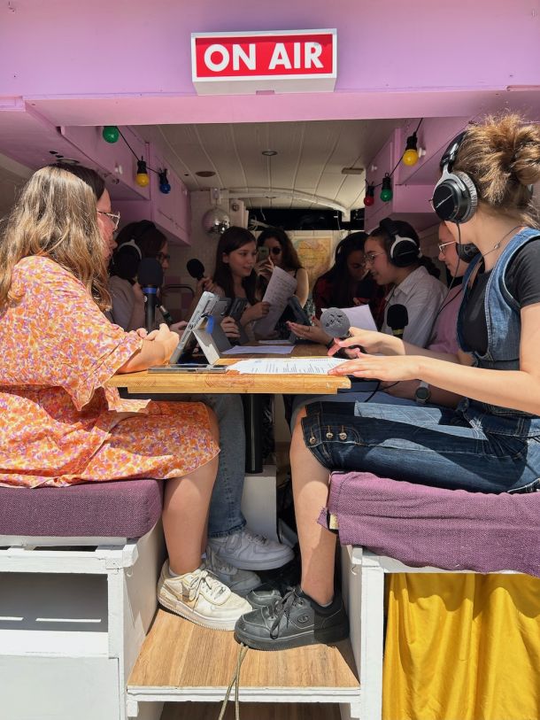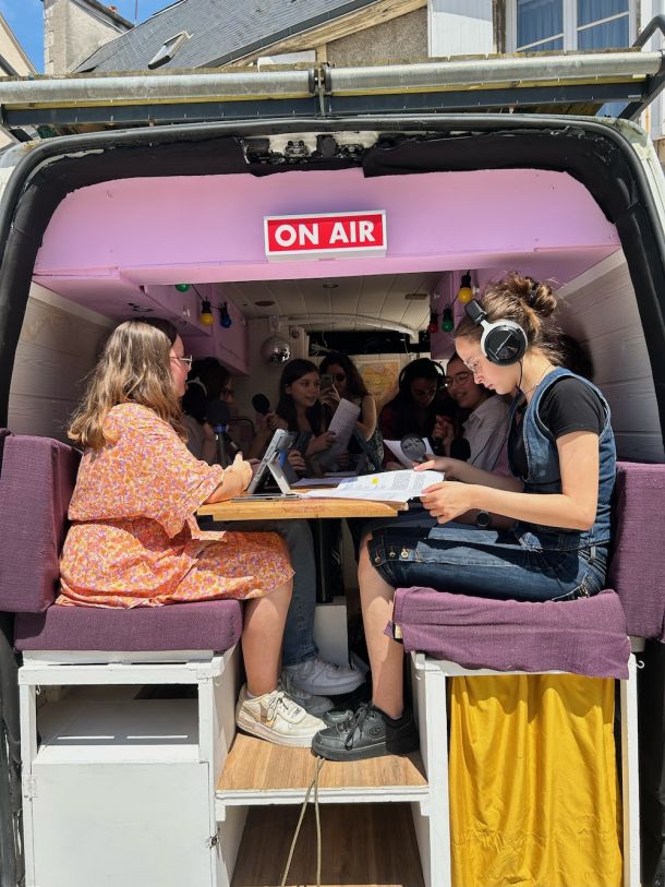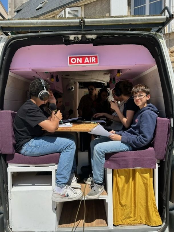 Le vendredi 7 juin 2024, le Club Média de La Providence a eu la chance de faire un direct dans le camion-radiophonique d’Agathe Gallo pour leur dernière émission de l’année, et quelle belle émission ! Les élèves ont brillé par la qualité de leurs textes et leur enthousiasme. Bravo à eux pour leur belle implication tout au long de l’année ! Merci à Agathe Gallo, notre journaliste encadrante, qui a su nous guider sur le chemin de l’excellence. Le Club Média (radio et journal) reviendra dès la rentrée avec de nouveaux projets !