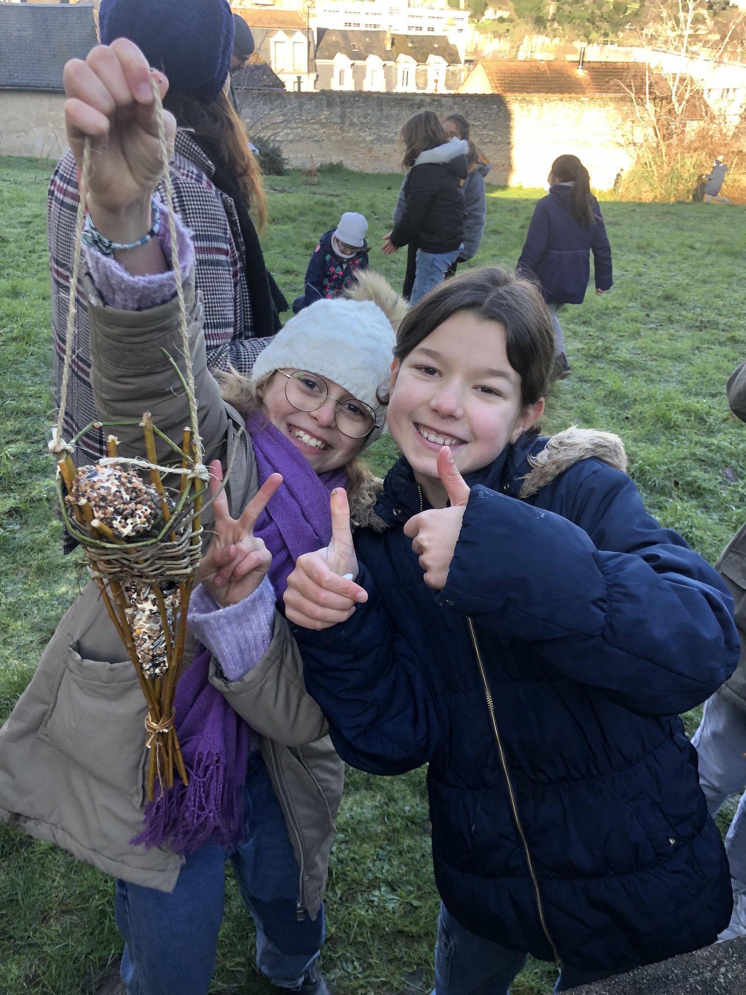 Aujourd’hui, les Cm1 ont construit des nichoirs et des mangeoires pour les oiseaux dans le jardin de l’école. Après un temps de construction, la classe est allée dans le jardin pour créer des nids d’oiseaux décoratifs géants avec les éléments naturels. C’était une journée de plaisir et de découvertes.