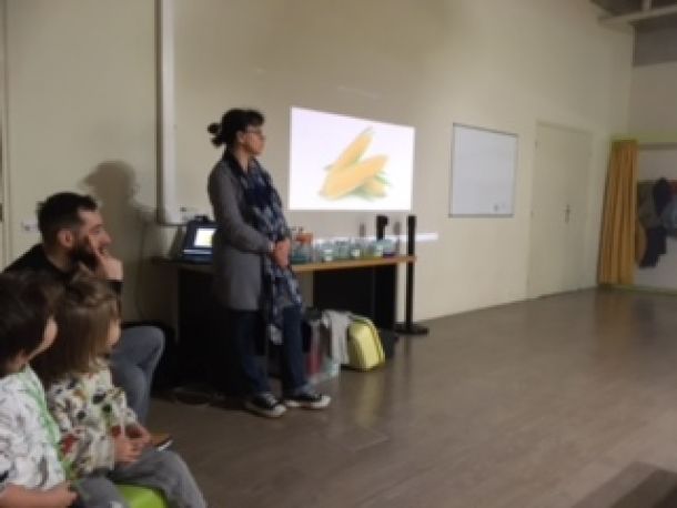 L’intervenante nous a d’abord expliqué qu’il y avait des couleurs dans la nature et elle nous a montré des images de fruits et légumes. Nous devions nommer et donner leur couleur.