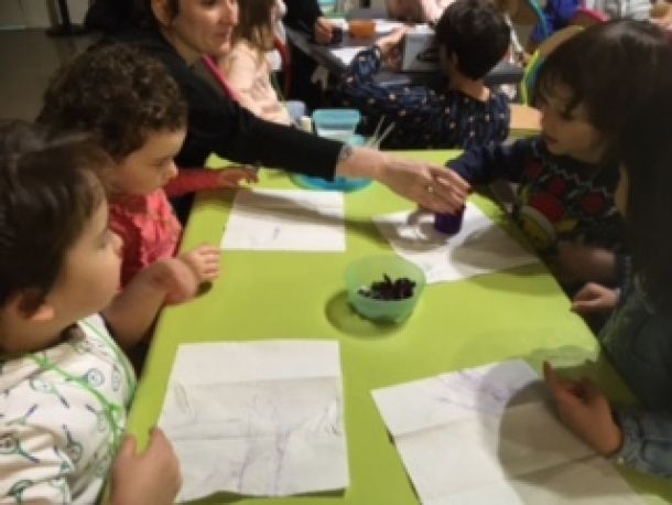 Ensuite, nous nous sommes installés et elle nous a fait frotter du chou rouge sur un sopalin, ce qui a laissé des traces violettes.